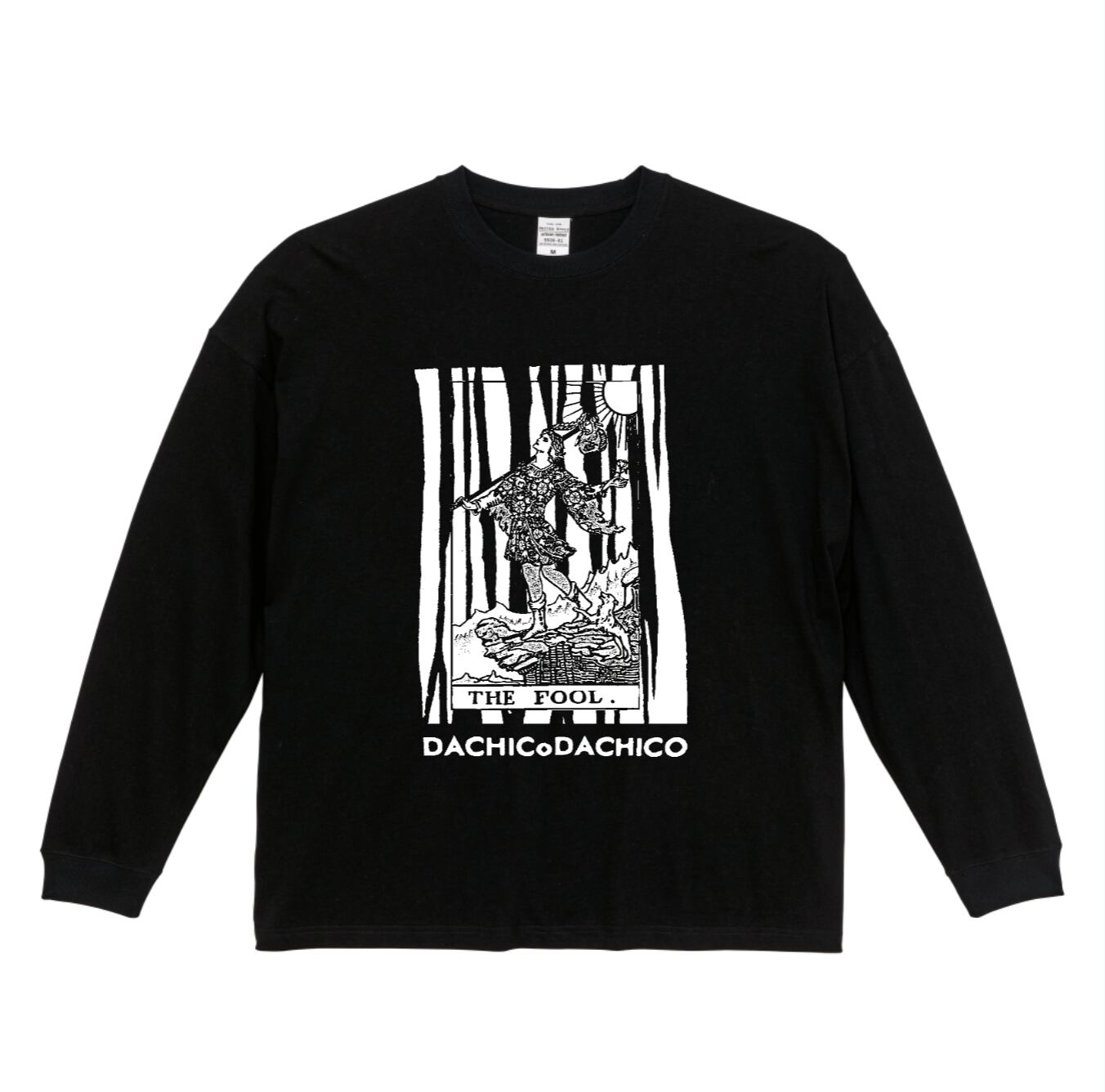 「THE FOOL」をモチーフにした、オリジナルタロットカードのデザインが施されたロングTシャツです。